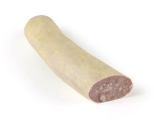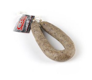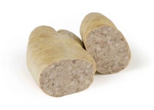 La botifarra blanca és un dels embotits cuits típics de la matança i es presenta d’infinites formes: amb fetge, amb llengua, amb carn de perol, amb ou, amb all i julivert. A Masia Empordà presenten el producte més pur: magre, panxeta i papada de porc (92%), sal i pebre, embotit en tripa natural. La botifarra blanca més valorada sol ser l’embotida en budell gros del porc, el peltruc. És molt saborosa i ideal per menjar amb pa amb tomata, però sobretot al mig d’un llonguet ben sucat i amarat d’oli.
