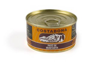 La tercera generació d’Embotits i Patés Costabona, de Molló, elabora aquest clàssic paté de campanya seguint la recepta de l’avi, d’origen francès, amb papada i fetge de porc, llet sencera de vaca, ous, farina de blat, sal, pebre i sals de cura. El paté de muntanya també va ser el producte que inaugurà aquest obrador del Pirineu, nascut en la dècada del 1960. Els avis tenien una botiga a la plaça del poble, on a banda de queviures de primera necessitat venien productes elaborats per ells mateixos.